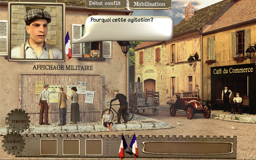 Jeu d'aventure permettant de revivre la première guerre mondiale en suivant Marcel, un jeune vigneron qui va se retrouver au coeur de la guerre. Par le biais de sa correspondance avec sa famille, explorer et prenez part au conflit à travers toutes ces facettes. Ce jeu d'aventure majoritairement sur le modèle "point n click" s'adresse à toutes classes d'âge. Une traduction en anglais permet la découverte par un public plus large. A tout moment, il est possible d'accèder à des informations historiques. Une rubrique donne accès aux données historiques essentielles classées géographiquement, chronologiquement mais également par thèmes.